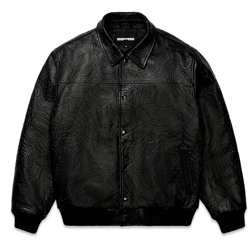 Sp5der Debossed Web Leather Jacket
